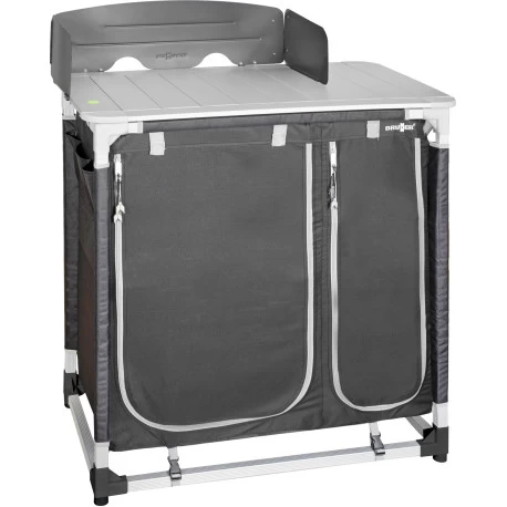 Mobiletto cucina di nuova concezione con 2 scomparti multifunzionali separati. Piano di lavoro in alluminio.